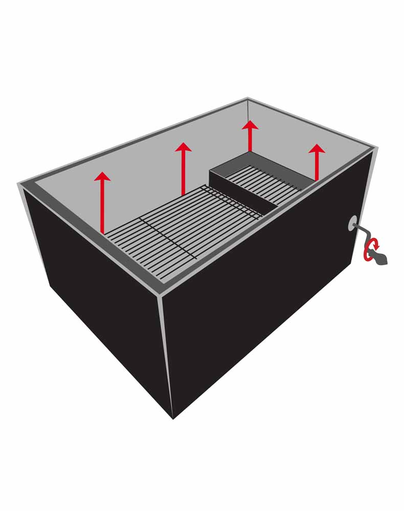 - Seamlessly transition between searing, grilling, and smoking by fine-tuning the firebox's height to suit your cooking method.